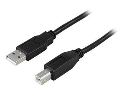 USB 2. 0 kabel Typ A hane - Typ B hane 5m, svart. En helt vanlig USB-kabel som används för mellan dator och hubb, skrivare, scanner, externa kabinett etc.