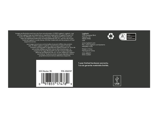 - Tysta klick: MX Master 3S Bluetooth-mus introducerar Quiet Clicks, som ger samma tillfredsställande känsla men med 90 % mindre klickljud (2)