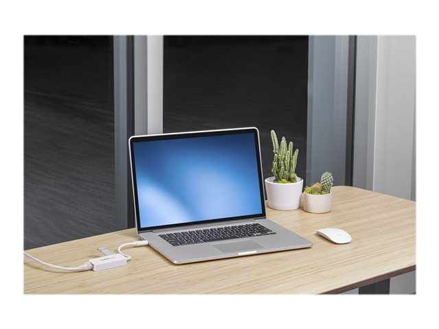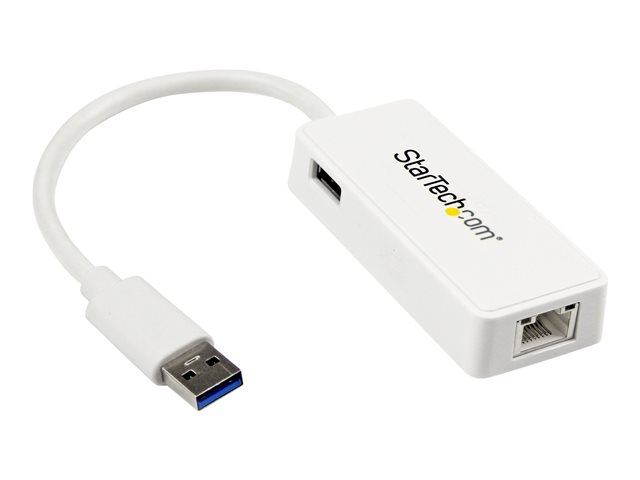 - Information Add a Gigabit Ethernet port and a USB 3.0 pass-through port to your laptop through a single USB 3.0 port. The USB31000SPTW USB 3.0 to Gigabit Ethernet Adapter lets you add a Gigabit network port to your Macbook or Ultrabook computer through a USB 3.0 port, and features an integrated USB 3.0 pass-through port that keeps your USB port available for use with other peripherals. The RJ45 port supports 10/100/1000 Mbps Ethernet and is fully compatible with IEEE 802.3i/u/ab standards. An ideal replacement LAN adapter or laptop accessory, this compact USB 3.0 NIC leverages the 5 Gbps speed of USB 3.0 to provide full gigabit bandwidth and also offers backward compatibility with USB 2.0 systems (speed limited by USB bus). The adapter supports features such as IPv4/IPv6 packet Checksum Offload Engine (COE) and TCP large send offload to reduce the load on your CPU. Jumbo Frames, full-duplex operation with 802.3x flow control and VLAN tagging are also supported, making this an efficient and full-featured USB network adapter.