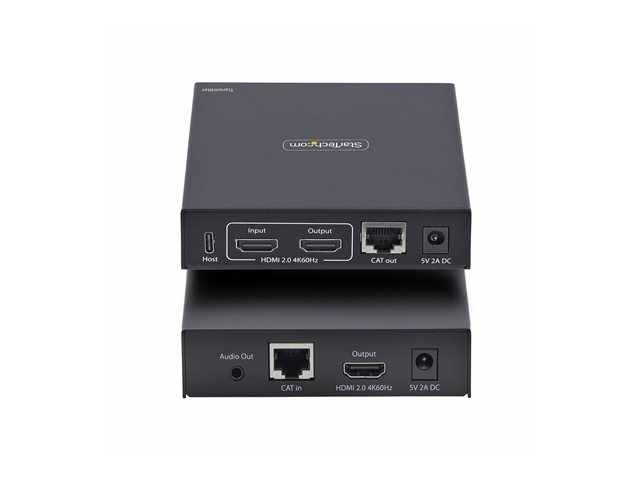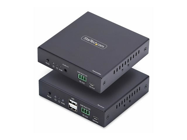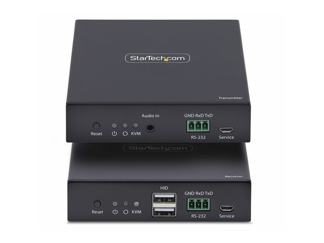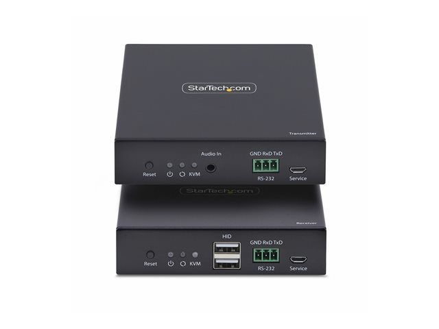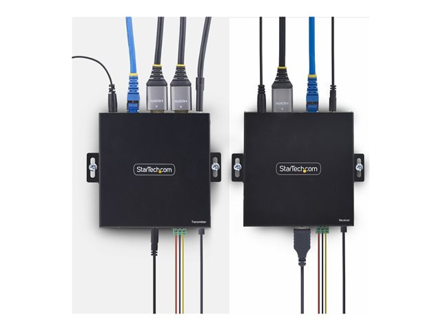 - Information HDMI KVM-förlängare över IP-nätverk från StarTech.com erbjuder sömlös anslutning och mångsidighet för digitala behov. Detta kit innehåller både en sändare och en mottagare, vilket möjliggör olika användningsscenarier. Den stöder video- och ljudöverföring med en maximal videoupplösning på 3840 x 2160 och en KVM V-Sync-hastighet på 60 Hz, vilket garanterar smidig prestanda. Denna extender är byggd för att tåla tuffa miljöer och fungerar inom ett brett temperaturområde från -20 °C till 60 °C och stödjer en luftfuktighet på 0–90 % RH. Enheten har flera gränssnittsalternativ, inklusive HDMI-in- och utgång, USB-C, RS-232 och mer, vilket gör den till en flexibel lösning för multimediainstallationer. Tack vare att den uppfyller Plug-and-Play-, FCC- och RoHS-standarderna är installation och användning problemfri.