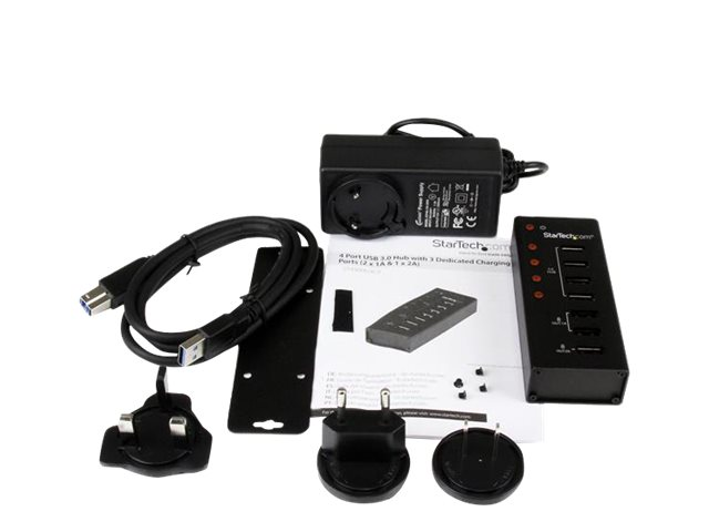 StarTech.com USB 3.0-hubb med 4 portar plus 3 dedicerade USB-laddningsportar (2x 1A & 1x 2A) ? väggmonterbart metallhölje