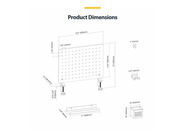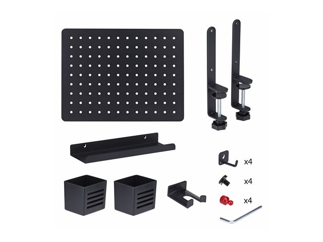 StarTech.com Clamp-On Pegboard with Accessories, 16.5 x 12.5in (42 x 32cm), Steel Pegboard, Desktop Storage Organizer, Desk Mount Peg Board, Black