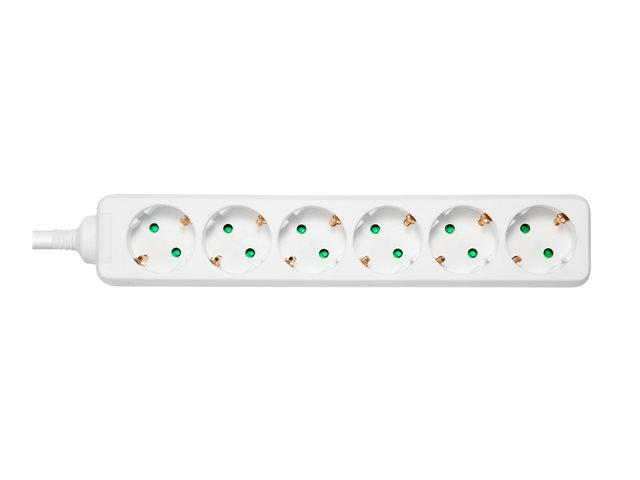 AC 250 V - 3680 Watt - ingång: power CEE 7/7 - utgångskontakter: 6 (6 x ström CEE 7/3) - 5 m sladd - vit